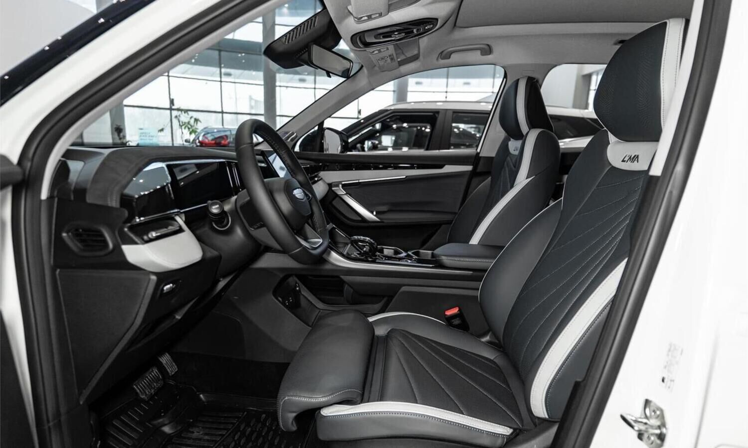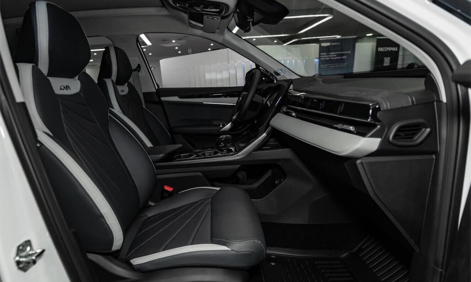 • Отделка интерьера и сидений тёмно-серой экокожей со светлыми вставками