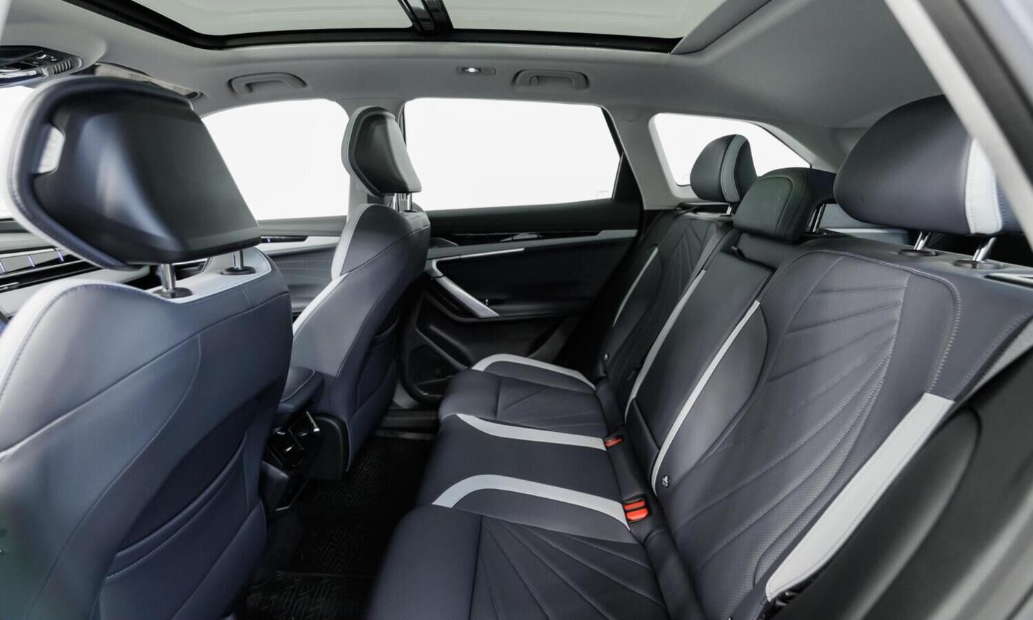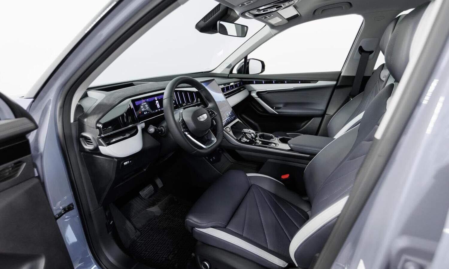 • Отделка интерьера и сидений тёмно-серой экокожей со светлыми вставками