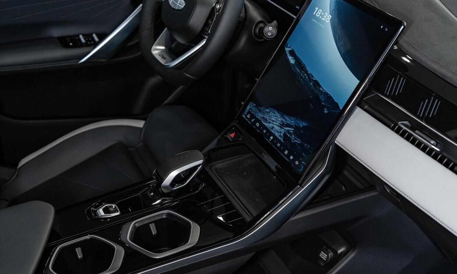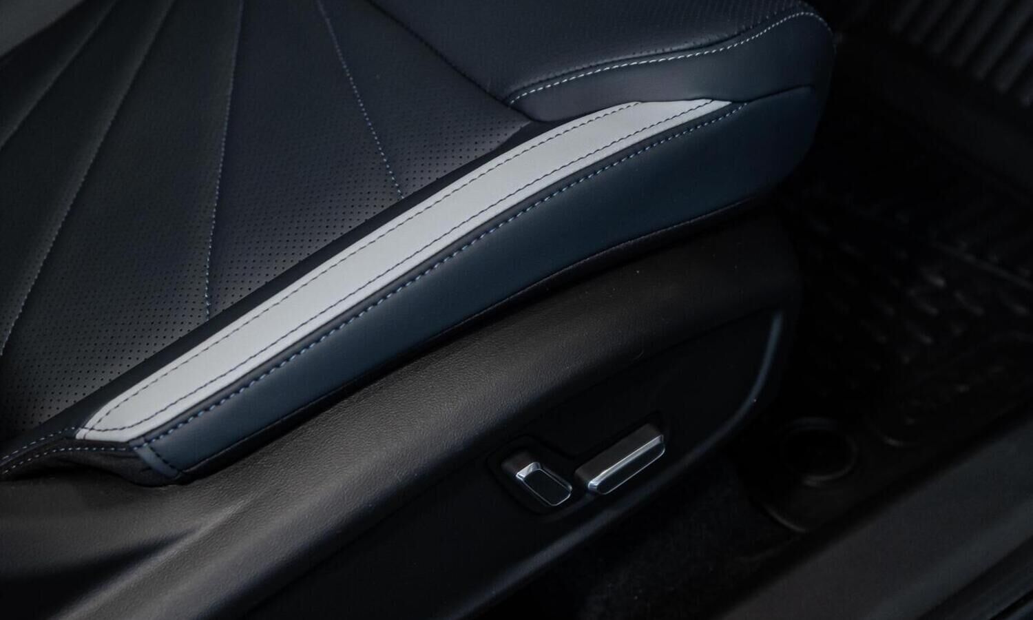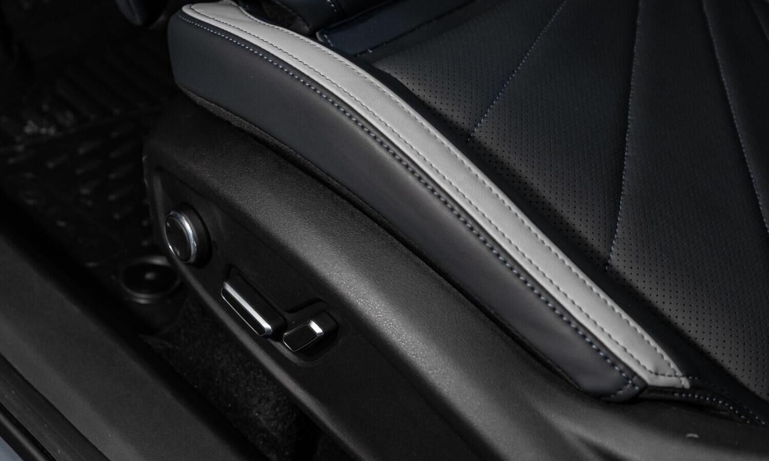 • Отделка интерьера и сидений тёмно-серой экокожей со светлыми вставками