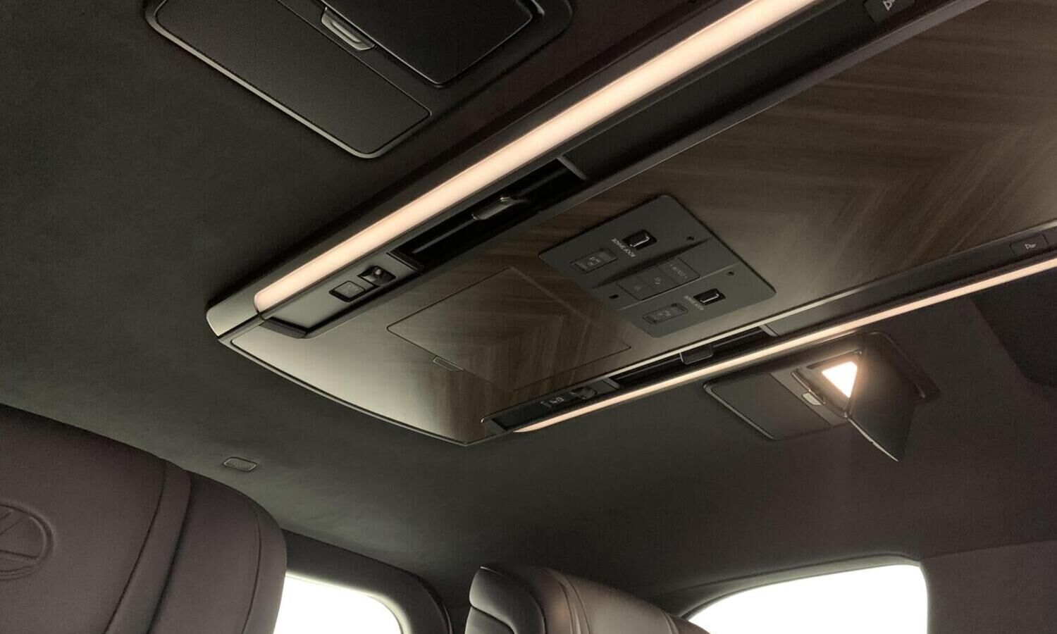 • Потолочная консоль управления для задних пассажиров + отделка из дерева
